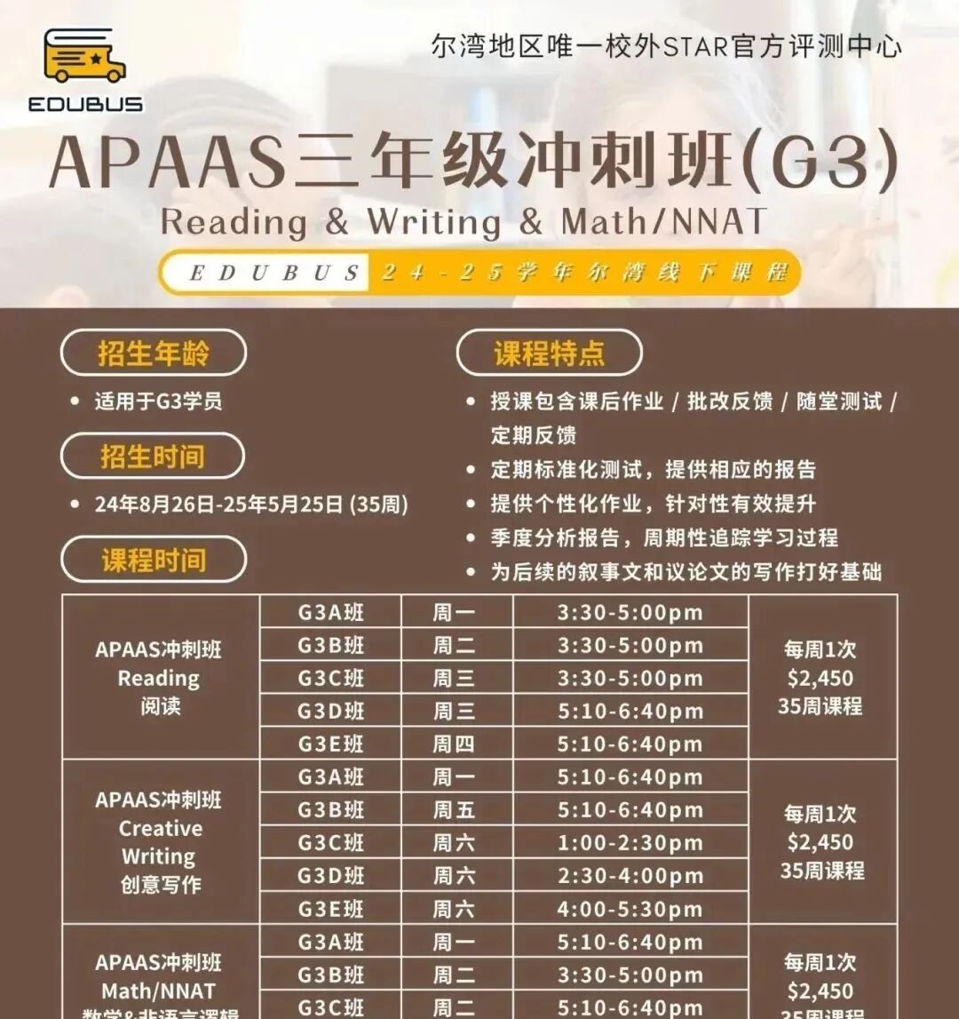 针对三年级的冲刺班,主要是为即将面临APAAS天才班考试的三年级学生设计的强化培训课程。