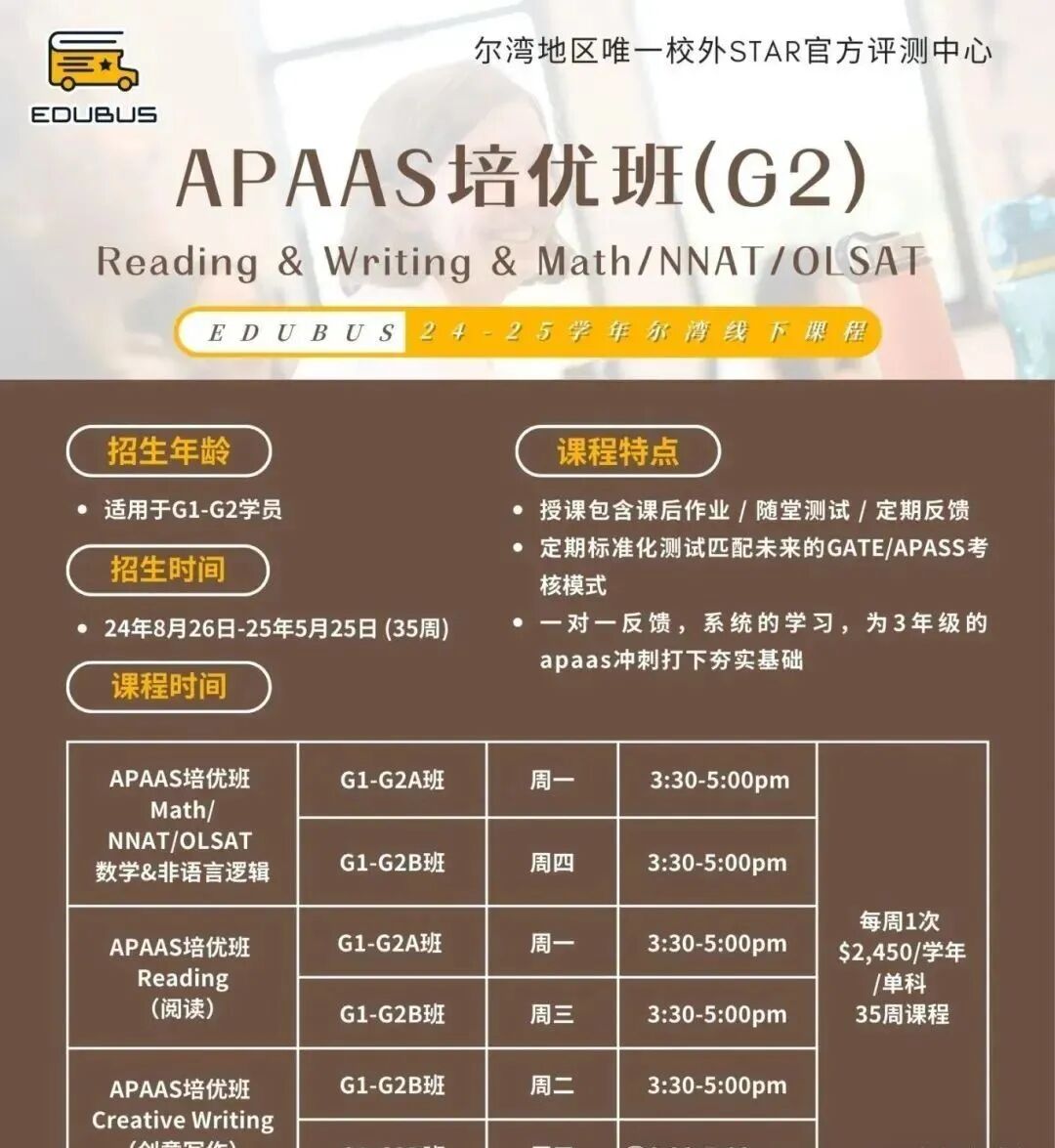 注:APAAS天才班是只有3-5年级的学生可以申请的教育项目。