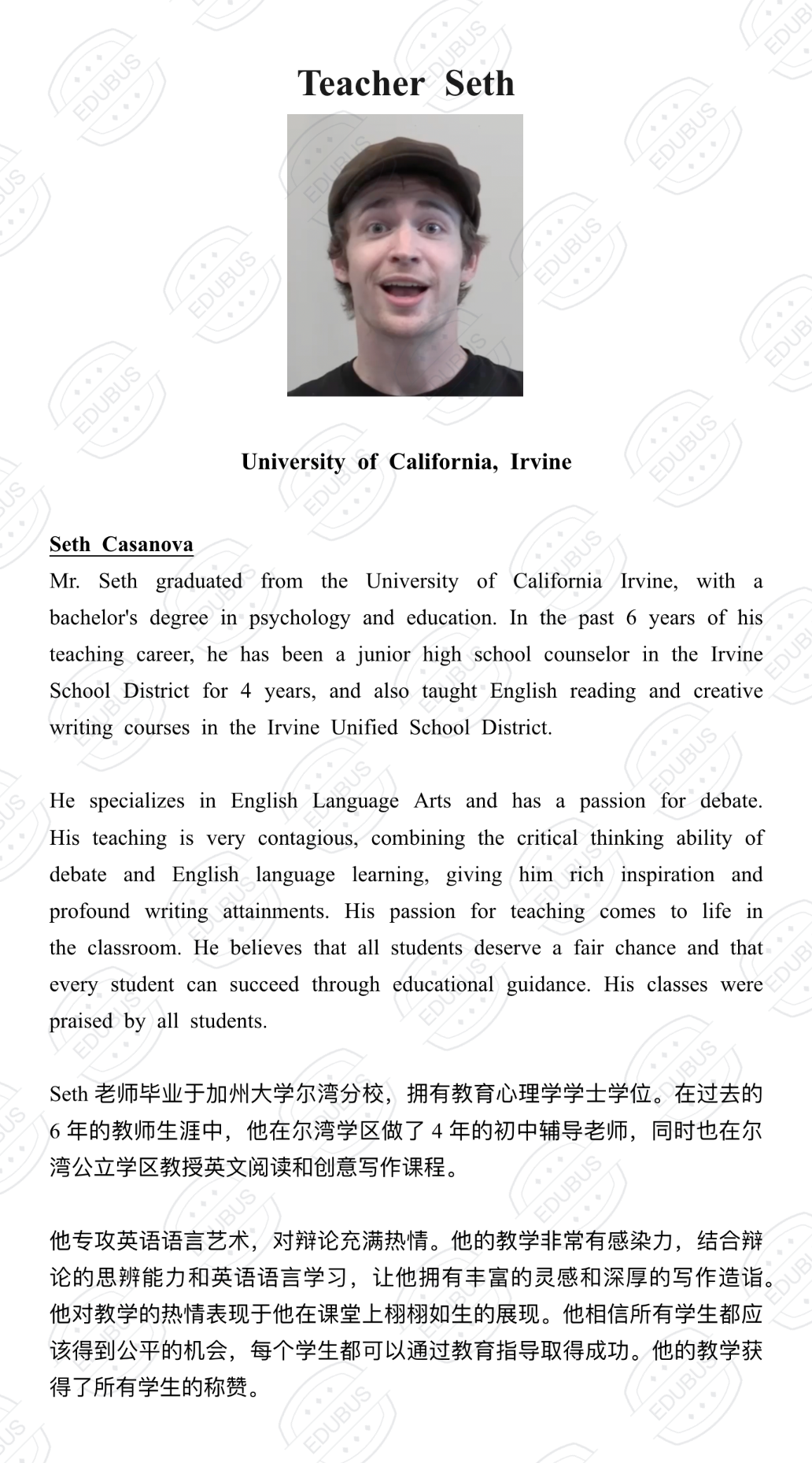 EDUBUS的特色写作课程结合学校的文学和社会科学话题,帮助学员准确理解和把握写作主题,高效处理相关文献资料,合理组织文章结构,提出有说服力的论点和论据,最终完成一篇高质量的学术论